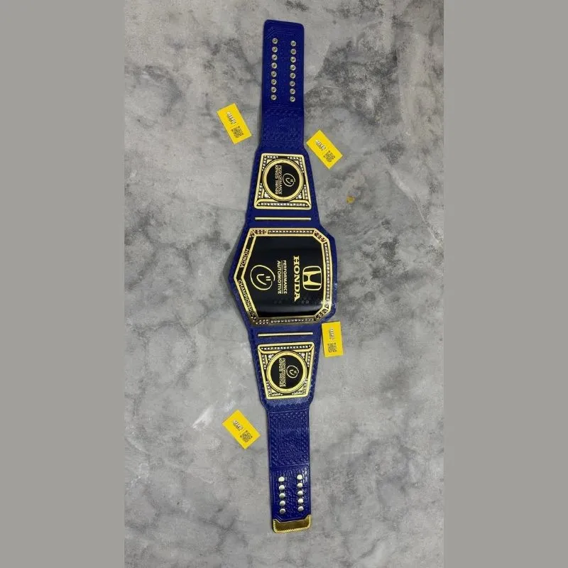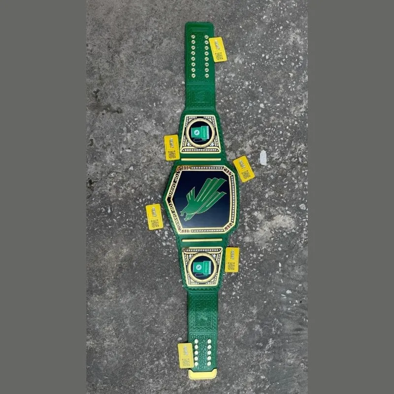 - Custom championship belt with thick brass plates (2MM–4MM) in gold or silver.